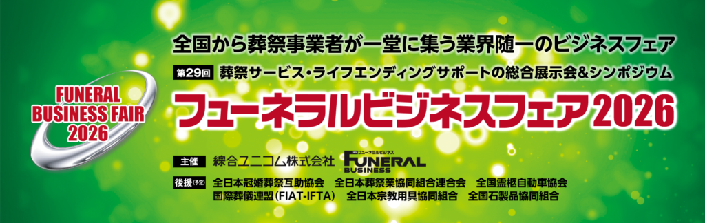 2026年6月23日(火)・24日(水)に、パシフィコ横浜にて開催される「フューネラルビジネスフェア2026」に出展致します。