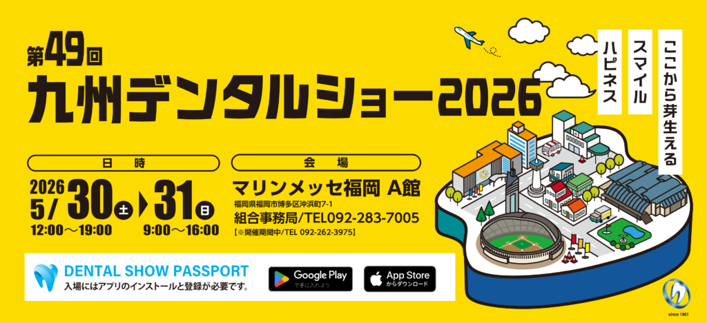 2026年5月30日(土)・31日(日)に、マリンメッセ福岡で開催される「第49回九州デンタルショー2026」に出展致します。