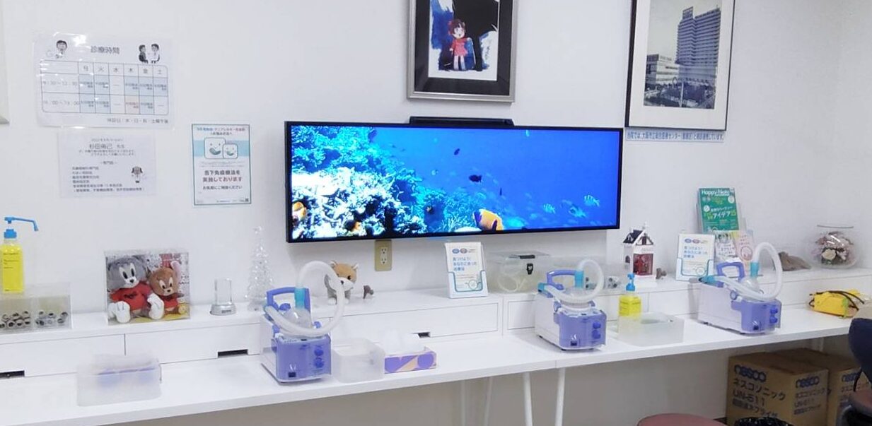 大阪市住之江区にございます耳鼻咽喉科すぎたクリニック様に導入していただきました。患者様が吸入器を使用されている間の癒しとして、海や草原のような自然の映像を流しつつも、花粉症や中耳炎等の案内を行うインフォメーションシステム […]