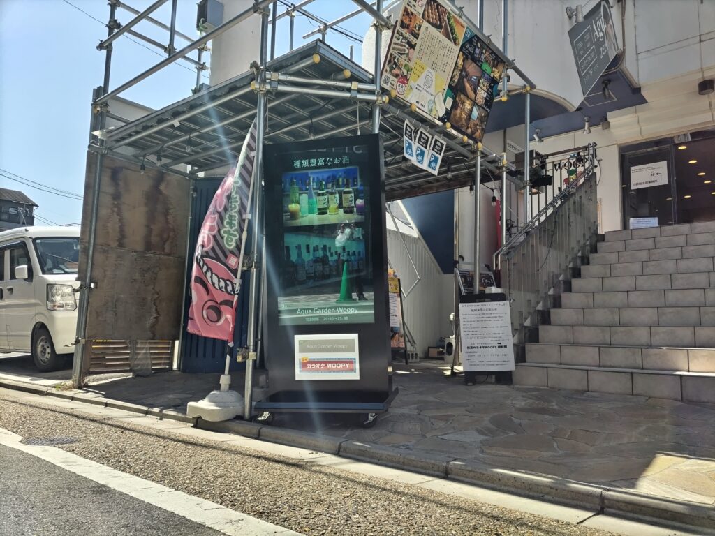 2026.04.18 京都市伏見区|カラオケWOOPY 様 京都市伏見区にございますカラオケWOOPY様に外向け防水型デジタルサイネージをご導入頂きました。昭和レトロをコンセプトにリニューアルされた店内の雰囲気を電子看板で表現しております。
